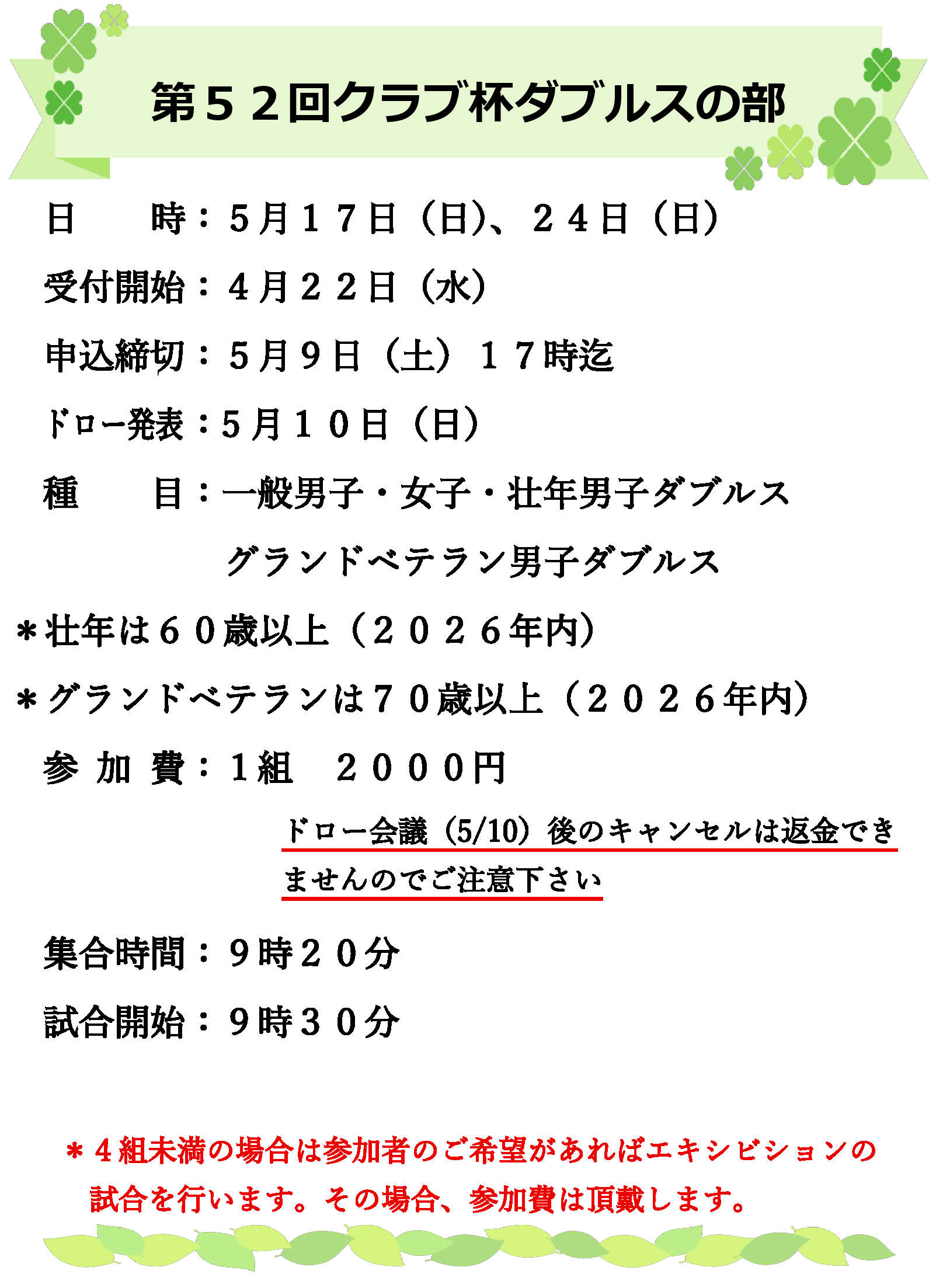 第52回クラブ杯ダブルスの部開催