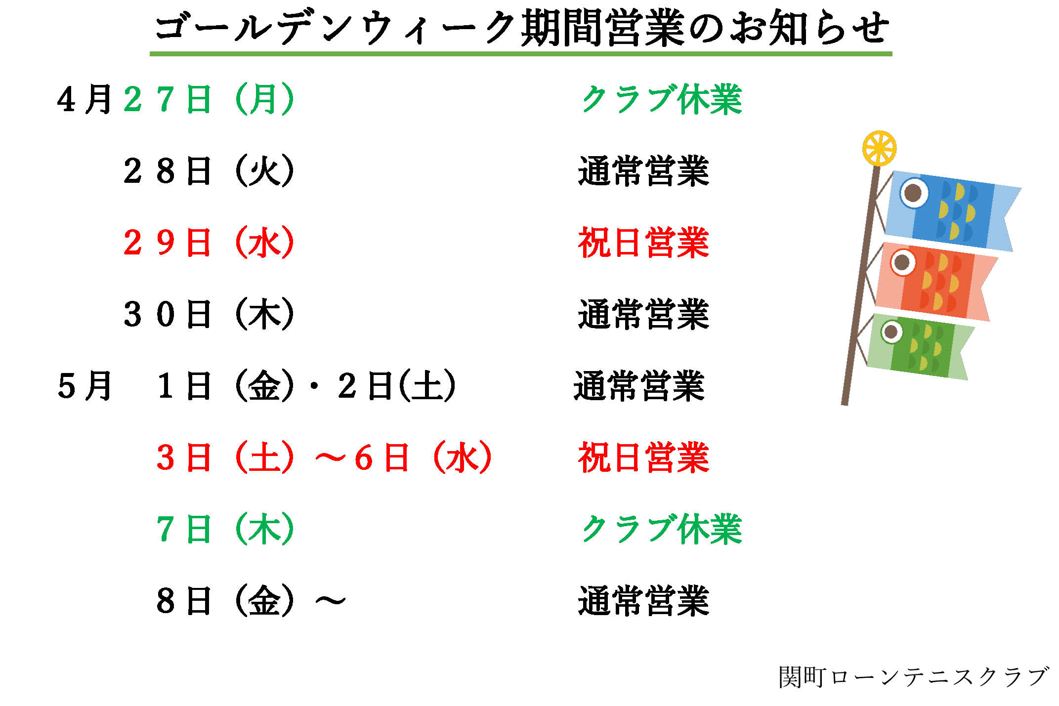 ゴールデンウィーク期間の営業お知らせ